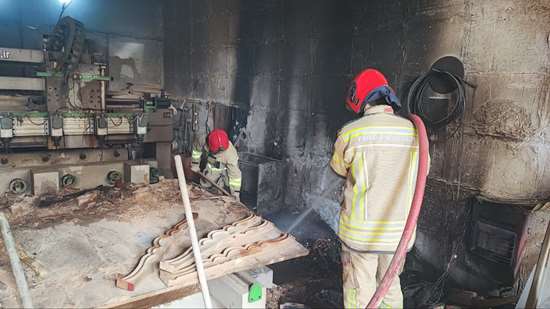 اطفاء حریق یک کارگاه نجاری توسط آتش نشانان