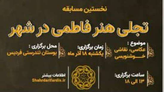 گفتنی است مسابقه تجلی هنر فاطمی در شهرفردیس به منظور ترویج فرهنگ اسلامی و سیره فاطمی به همت اداره ارتباطات و امور بین‌الملل شهرداری فردیس برگزار می شود.