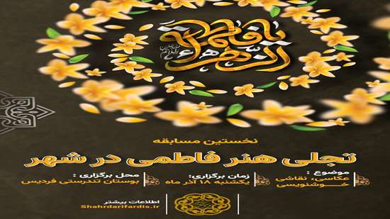 به گزارش پایگاه خبری مدیریت شهری فردیس، مسابقه تجلی هنر فاطمی در شهرفردیس به منظور مشارکت شهروندان در ترویج فرهنگ اسلامی  و سیره فاطمی پیش بینی شده است. در این راستا از همه هنرمندان در رشته های خوشنویسی، نقاشی و عکاسی دعوت می شود برای حضور در این مسابقه روز  یکشنبه ۱۸ آذرماه ۱۴۰۳ در محل بوستان تندرستی واقع در بلوار ۴۴ متری امام خمینی حضور به هم رسانند.
