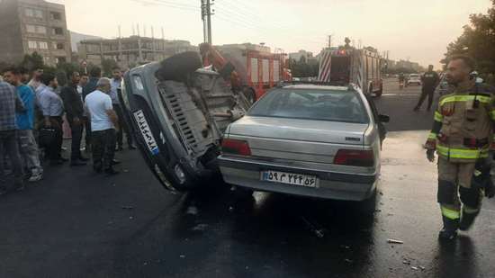 رئیس سازمان آتشنشانی و خدمات ایمنی شهرداری فردیس از برخورد چهار دستگاه خودرو با یکدیگر خبر داد. حسین عاشوری در گفتگو با پایگاه خبری مدیریت شهری فردیس، در خصوص این خبر اظهار کرد: در ساعت ۱۸:۴۴ روز گذشته طی تماس یکی از شهروندان با سامانه ۱۲۵ مبنی بر نشت سوخت خودرو، از ایستگاه ۱۰۲ دو دستگاه خودروی عملیاتی به همراه ۴ آتشنشان به محل حادثه اعزام شدند. وی با بیان اینکه در این حادثه ۴ دستگاه خودروی سواری با یکدیگر برخورد کردند؛ افزود: یک دستگاه خودروی پرشیا، یک دستگاه ۴۰۵، یک دستگاه دنا و یک دستگاه خودروی تارا در فردیس باهم برخورد کردند. خودروی سواری پرشیا واژگون شده و دچار نشت سوخت شدهبود. رئیس آتشنشانی فردیس مدت زمان این عملیات را ۲۵ دقیقه اعلام کرد و گفت: آتشنشانان محل حادثه را ایمن سازی کردند.خوشبختانه این حادثه مصدومی نداشت.